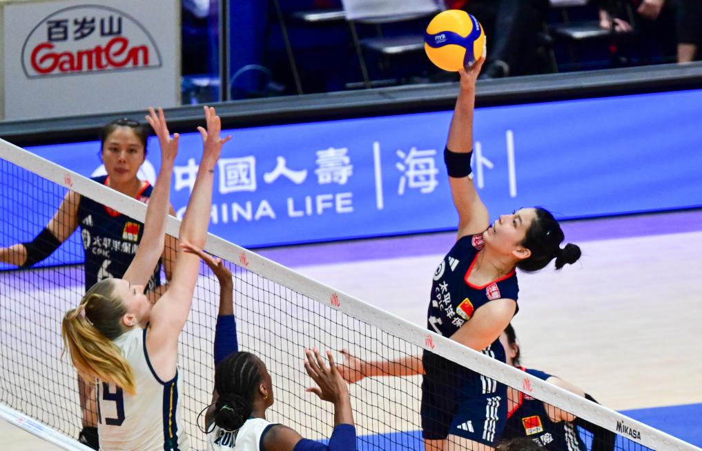 6月22日,中國(guó)隊(duì)球員莊宇珊(右上)在比賽中進(jìn)攻。新華社記者 朱煒 攝