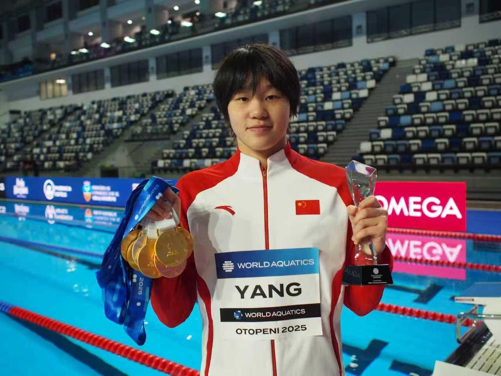 “青少年選手就要多參加比賽,尤其是像世青賽這樣的國際比賽,通過比賽認(rèn)清自己、積累經(jīng)驗,增強(qiáng)自信。我會奉獻(xiàn)自己的全部力量,助力中國游泳走好每一步,在2028年洛杉磯奧運會展示中國速度?!迸翣柛ダ镎f。