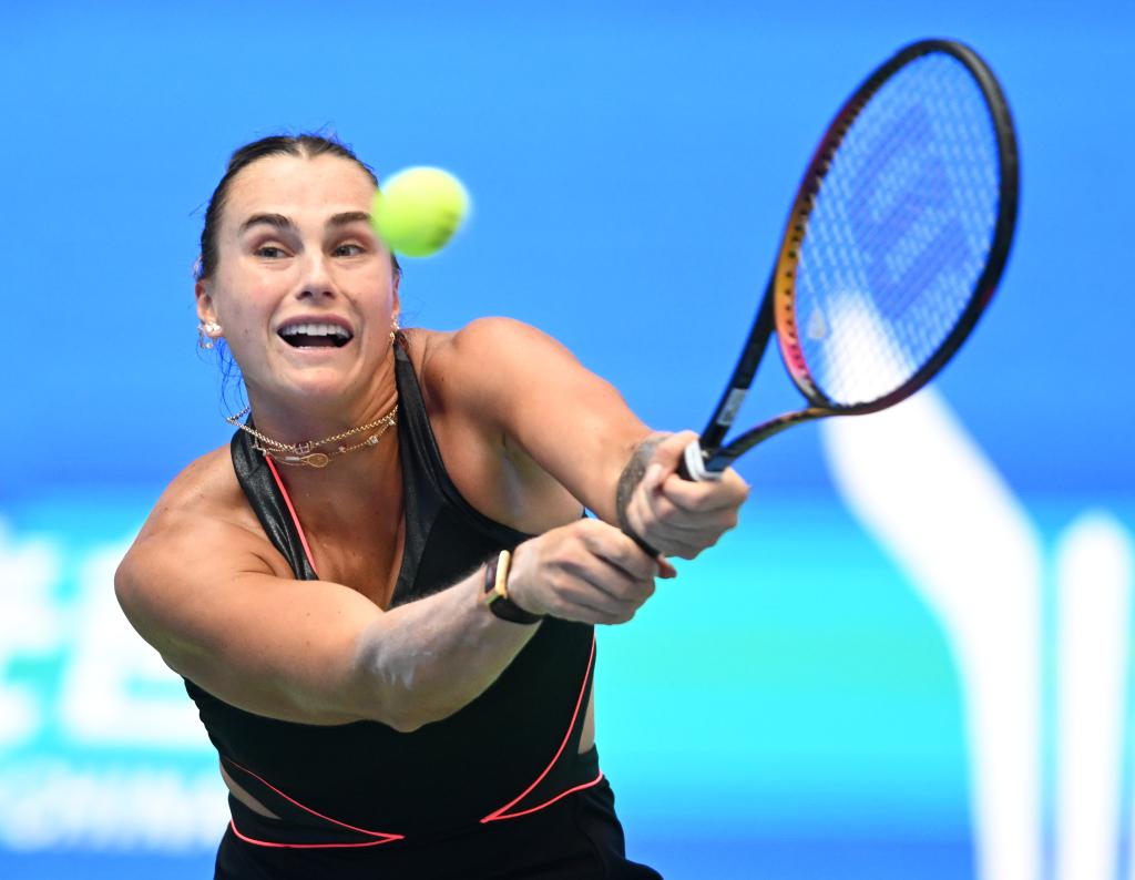 10月8日,薩巴倫卡在比賽中回球。新華社記者 程敏 攝