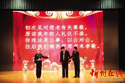 1月27日至29日,偏關(guān)縣公安局交警大隊交通安全文藝宣傳隊在隊長們的帶領(lǐng)下,先后走進(jìn)市實(shí)驗(yàn)中學(xué)、市客運(yùn)中心、國家電網(wǎng)忻州供電分公司進(jìn)行了三場演出,用自編自導(dǎo)自演、群眾喜聞樂見的“漫翰調(diào)”、“二人臺”、北路梆子、民歌等一系列極具地域文化特色的地方小戲、說唱歌舞等曲藝形式進(jìn)行宣傳演出,贏得滿堂喝彩,場場掌聲雷動。作為春節(jié)回家路上的一道文化盛宴,這次春節(jié)前的平安出行警示教育“送安全下鄉(xiāng)”巡演是我市公安交警精心策劃、編排的春運(yùn)交通安全宣傳行動之一。28日,市客運(yùn)中心人頭攢動,熙熙攘攘,大廳外懸掛的橫幅標(biāo)語“守護(hù)您的平安出行,保障道路安全暢通是每一位交警的神圣職責(zé)!”格外醒目。候車大廳里,暖意融融,市公安局交警支隊組織的春運(yùn)交通安全文藝演出正在進(jìn)行,交警版的民間小調(diào)《拜大年》、小品《警鐘聲聲》、雙簧《二愣子》等節(jié)目令人賞心悅目、捧腹不止。在歡笑之余,提醒和教育廣大群眾自覺抵制不文明、不安全交通行為,觀看演出的旅客和客車司機(jī)紛紛感慨,這樣的宣傳教育生動形象,人人愛看且耐人尋味,警示作用很大。