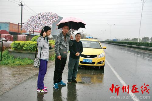 4月6日智杰(中)、南京出租車司機(jī)夏?。ㄓ遥┖捅緢?bào)記者在當(dāng)時(shí)709路公交車急剎車??康兀ㄖ谴婊?攝)