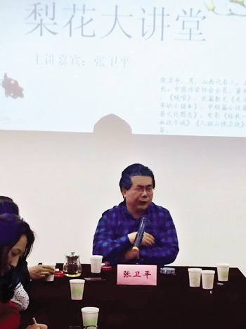 農(nóng)家出身的張衛(wèi)平來(lái)自代縣基層,現(xiàn)為中國(guó)作家協(xié)會(huì)會(huì)員,著有長(zhǎng)篇小說(shuō)《給我一支槍》、《絕唱》,長(zhǎng)篇散文《走馬雁門(mén)》,短篇小說(shuō)集《童年的小搖車(chē)》、中短篇小說(shuō)集《野魂》,電影《給我一支槍》、《浴血雁門(mén)關(guān)》、《血戰(zhàn)午城》、《人祖山保衛(wèi)戰(zhàn)》,電視連續(xù)劇《大宗師》。在這次“梨花大講堂”文學(xué)講座上,張衛(wèi)平從文學(xué)的載體切入,縱論了從口頭文學(xué)到紙質(zhì)文學(xué)、影視文學(xué)、網(wǎng)絡(luò)文學(xué)的演變發(fā)展;結(jié)合自己的創(chuàng)作感悟,站在技術(shù)層面,從語(yǔ)言、人物、情感、結(jié)構(gòu)、思想五個(gè)高度闡述了對(duì)文學(xué)的判斷;站在藝術(shù)的境界,分情感、歷史、精神三大板塊,講解了作品提升的高度。該市偵探小說(shuō)作家狄保壽感到張衛(wèi)平的講解切中了文學(xué)創(chuàng)作的要害,讓大家明白了如何提高文學(xué)創(chuàng)作水平的道理。青年文學(xué)愛(ài)好者李詠梅表示要按照張衛(wèi)平老師的講授,不斷努力,寫(xiě)出更好的文學(xué)作品。該市文聯(lián)主席鄭建芳告訴記者:“梨花大講堂要形成常態(tài)化,為提升全市文學(xué)創(chuàng)作隊(duì)伍整體素質(zhì)發(fā)力。”(藺紅)