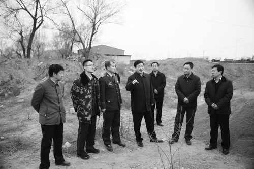 溫建軍市長(zhǎng)(左四)帶領(lǐng)相關(guān)部門負(fù)責(zé)人現(xiàn)場(chǎng)辦公。