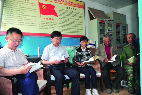 劉桂珍與鄉(xiāng)領(lǐng)導(dǎo)一塊組織黨員開展“兩學(xué)一做”學(xué)習(xí)教育工作