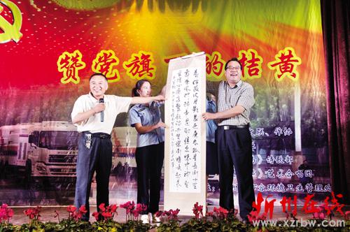 本報訊 7月3日晚8時,忻府區(qū)文聯、忻府區(qū)作家協(xié)會和遺山詩社在忻州市住建局禮堂共同舉辦了一場大型詩歌吟誦演唱會,用詩的語言、歌的韻律抒發(fā)了對黨的祝福和對環(huán)衛(wèi)工人的贊美。7月1日是黨的生日,在此之際,他們用詩歌表達對黨的熱愛,也表達對在黨旗下默默付出的勞動者們的敬意。
