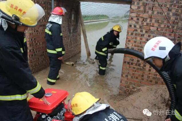 19日中午12時,忻府區(qū)中隊在得到消息后迅速趕往現(xiàn)場,在小區(qū)大門口用砂石修筑起臨時堤壩,再使用機動泵將地下室的積水抽到消防車內(nèi),最后統(tǒng)一排到路邊下水道里,經(jīng)過將近四個小時的時間將險情處理完畢。
