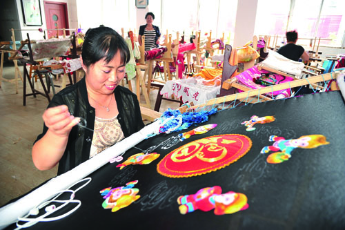高鳳蘭作為雁繡“非遺”傳承人,公司創(chuàng)辦于2009年,主要從事挖掘、研究、傳承、開發(fā)雁門關(guān)地域民間傳統(tǒng)手工刺繡工藝,同時學習引進蘇繡工藝精華,新創(chuàng)雁繡和高錦繡藝術(shù)。各種手工繡品做工精細,寓意深刻,情趣盎然,技術(shù)含量高,實用性觀賞性強,達到了“繡花花生香,繡鳥能聞聲,繡虎能奔跑,繡人能傳神”的最佳境界,一大批弘揚傳統(tǒng)文化、紅色文化、廉政文化、法治文化的繡品投放市場好評如潮,供不應(yīng)求?,F(xiàn)已無償培訓當?shù)睾屯獾剞r(nóng)村婦女5000多人,不僅為傳承雁繡和高錦繡工藝、發(fā)展文化旅游產(chǎn)業(yè)壯大了隊伍培養(yǎng)了人才,而且為弘揚雁門文化和精神文明立下了汗馬功勞,同時也讓昔日圍著鍋臺轉(zhuǎn)的農(nóng)村婦女走上了創(chuàng)業(yè)致富的道路,不少婦女年創(chuàng)收兩萬多元。今年8月4日至9日,她將攜帶精心制作的高錦繡作品《金猴送?!?、《五福捧壽》、《鹿鶴同春》、《金玉滿堂》、《吉祥中華》等,應(yīng)邀參加在大同市舉辦的第三屆“三晉巧姐”手工藝作品展,力爭拿大獎。(石俊文 劉睿)