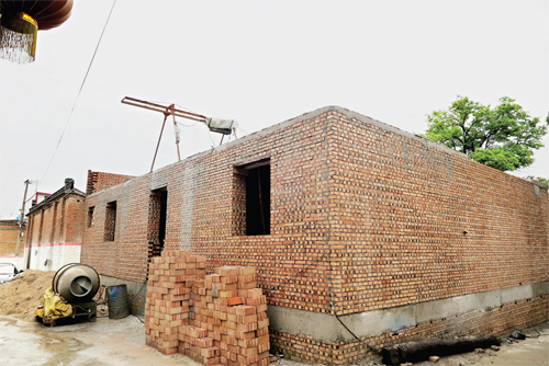 7月20日上午,記者驅車來到忻府區(qū)解原鄉(xiāng)北趙村。在一個緊鄰村委會北側的逼仄巷子里,記者見到了這棟已經停工的紅磚房。一層和地下室主體已經建成,修葺齊整的墻面與周圍的土階茅屋形成了鮮明的對比,沙子、攪拌機堆放在旁邊,讓本就不寬敞的巷子顯得更加擁擠不堪。