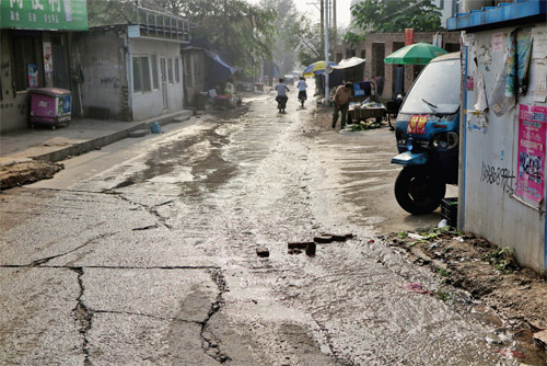 漏水處位于龍崗街龍崗小區(qū)門前15米處,已經(jīng)形成了一個一米見方的大坑,自來水源源不斷地從坑里流出,裹著泥沙沿街流去。在現(xiàn)場,居民何女士告訴記者,自來水已經(jīng)流了一天一夜,他們小區(qū)門前形成了小溪,想要過馬路必需踩著墊腳石,目前最擔(dān)心的是由于流出的水多半滲入了地下,容易導(dǎo)致地質(zhì)塌陷,希望相關(guān)部門盡快修復(fù)。記者隨即撥打了自來水公司報修電話,反映了上述情況,工作人員答復(fù)會派人盡快修理。到記者發(fā)稿,破裂的水管已修復(fù)。圖為7月29日被水浸泡的龍崗街(張志遠)