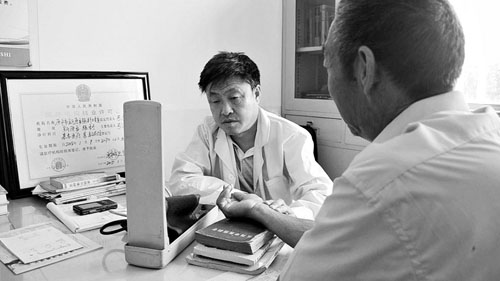 除了擔(dān)任村黨支部書記,弓潤鎖十四年如一日,在張村診所坐診,為村民看病