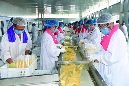 加工生產(chǎn)水果玉米的熱烈場面