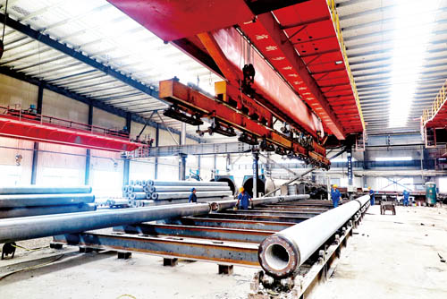 圖為廣和基業(yè)管樁生產(chǎn)車間一角