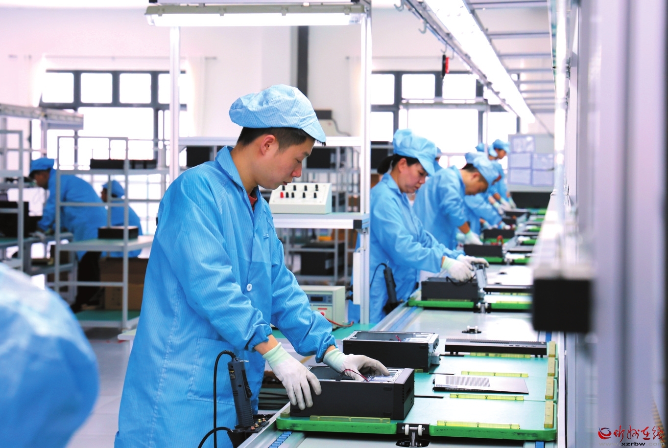 本報訊(記者白雪萍 趙丹琦)近日,在山西誠邁電子有限公司,記者透過玻璃觀察窗望去,誠邁信創(chuàng)電腦生產基地的無塵車間景象一覽無余——環(huán)境明亮整潔,生產線有序運轉,13名身著藍色防靜電服的工作人員專注且熟練地進行電腦組裝,每日能完成約300臺電腦的組裝任務。
