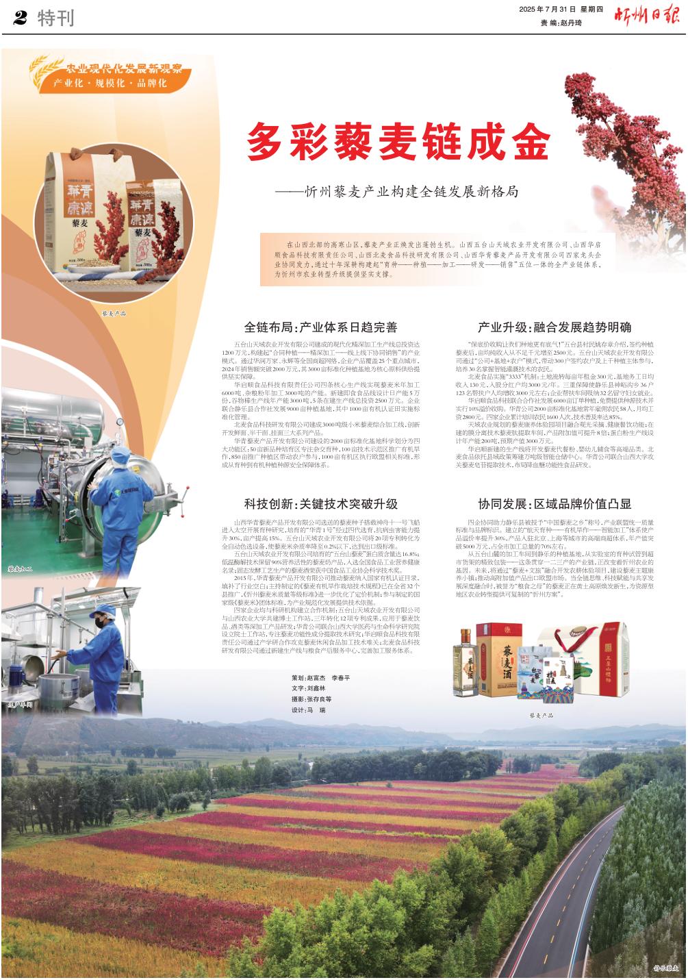 從五臺山麓的加工車間到靜樂的種植基地,從實驗室的育種試管到超市貨架的精致包裝——這條貫穿一二三產(chǎn)的產(chǎn)業(yè)鏈,正改變著忻州農(nóng)業(yè)的基因。未來,將通過“藜麥+文旅”融合開發(fā)農(nóng)耕體驗項目,建設(shè)藜麥主題康養(yǎng)小鎮(zhèn);推動高附加值產(chǎn)品出口歐盟市場。當全鏈思維、科技賦能與共享發(fā)展深度融合時,被譽為“糧食之母”的藜麥正在黃土高原煥發(fā)新生,為資源型地區(qū)農(nóng)業(yè)轉(zhuǎn)型提供可復制的“忻州方案”。