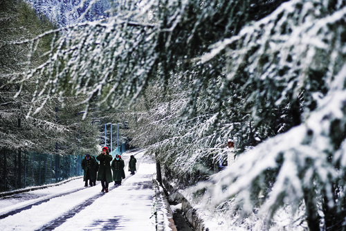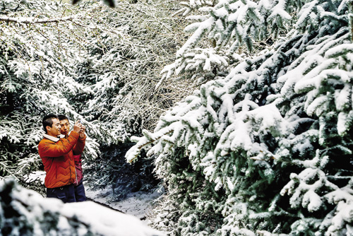 5月12日凌晨,蘆芽山萬年冰洞景區(qū)迎來了一場雪。農歷立夏已過一周,我國大多數地方已花團錦簇,蘆芽山萬年冰洞景區(qū)卻又遇降雪,景區(qū)頃刻間就被白雪覆蓋。來景區(qū)旅游的游客被這場突如其來的大雪驚訝不已,紛紛拍照留念。(曹建國 攝)