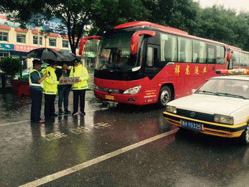 稽查人員叮囑駕駛?cè)藛T雨天行車注意事項(xiàng)