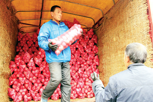 10月23日,原平市果農正在德金城農產品交易市場卸貨,進行銷售。原平市著力打通農產品銷售渠道,通過創(chuàng)建市場、加強管理,將當地農產品規(guī)范到統(tǒng)一銷售場所,抱團銷售農產品,不僅方便了消費者,而且便于走出去,打造知名品牌。(吉建平 攝)