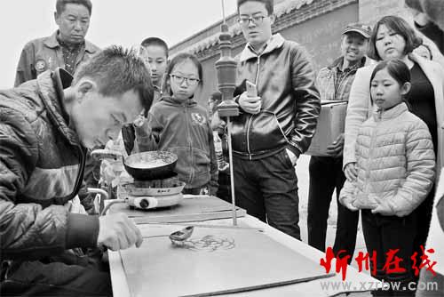 4月4日,在原平市天牙山風(fēng)景區(qū)一位農(nóng)民正在制作糖人。當(dāng)日是清明節(jié),不少游人紛紛走出家門踏青賞花,有許多人圍在農(nóng)民身邊要求買糖人,這位農(nóng)民制作糖人手法熟練,既豐富了景區(qū)市場,又增加了個人收入。 褚震 攝