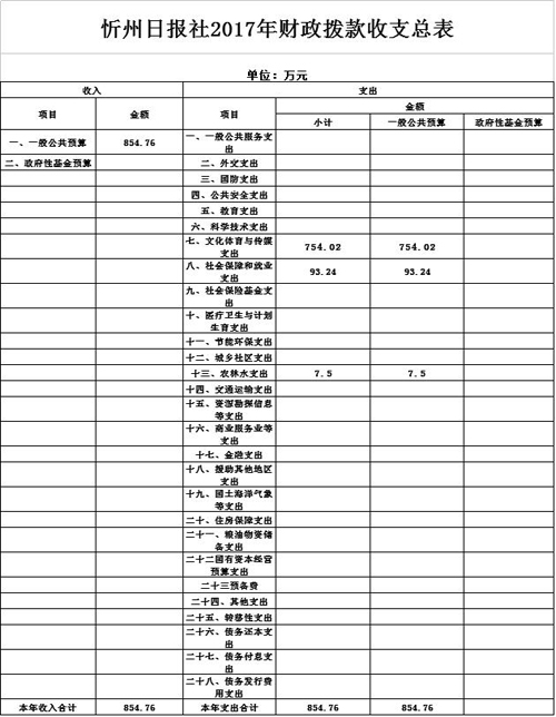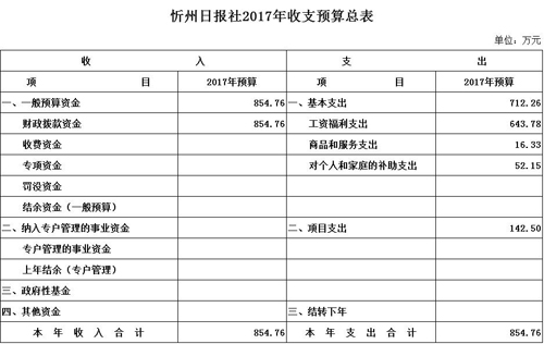 忻州日報社2017年度部門預(yù)算及“三公”經(jīng)費預(yù)算公開情況