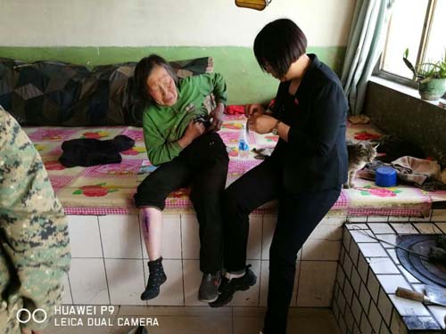 5月16日,忻州市衛(wèi)計委副主任楊春枝帶著黨支部部分黨員和忻州市中醫(yī)院的醫(yī)護(hù)人員再次趕赴到扶貧點(diǎn)寧武縣涔山鄉(xiāng)漚泥灣村,一進(jìn)村她(他)們連口水也沒有來得及喝,就安排中醫(yī)院醫(yī)護(hù)人員給村民們進(jìn)行體檢,楊主任和支部黨員就組織村委在村的6名黨員干部召開維護(hù)核心見諸行動專題黨課,她(他)們共同重溫黨章,面對黨旗舉手宣誓,楊主任親自上臺主講了一堂生動的黨課。隨后,她(他)們再次看望了貧困戶,在幫扶聯(lián)系貧困戶張存花家中,楊春枝主任從包里掏出自費(fèi)購買的膏藥,并親手扶起衣服給老人貼在患處?!澳銈兇罄线h(yuǎn)的每次都來看望我,上次我說腰疼,這次就給我?guī)砹烁嗨帲€親手給我貼上,不知道該怎樣感謝呀,這閨女就是比親閨女都親……”寧武縣涔山鄉(xiāng)漚泥灣村80歲的殘疾貧困戶張存花緊緊拉著扶貧干部忻州市衛(wèi)計委副主任楊春枝的手,激動地久久不肯松開。(郝法林 米永平)