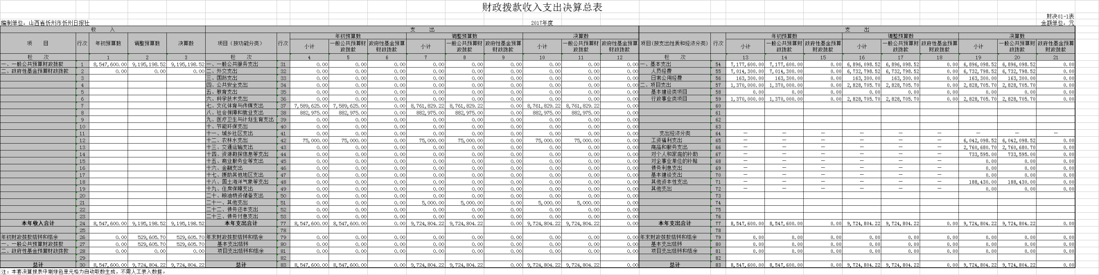 1、收入支出決算總表