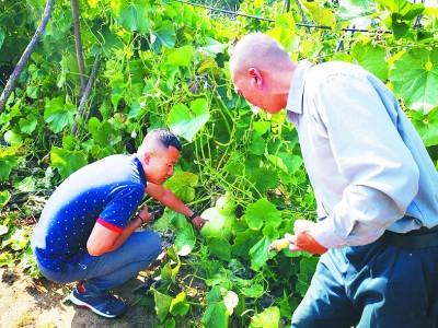 山西省總工會派駐宋家溝村第一書記楊濤(左)幫助村民引進葫蘆種植,以豐富旅游產(chǎn)品。光明日報記者 李建斌攝