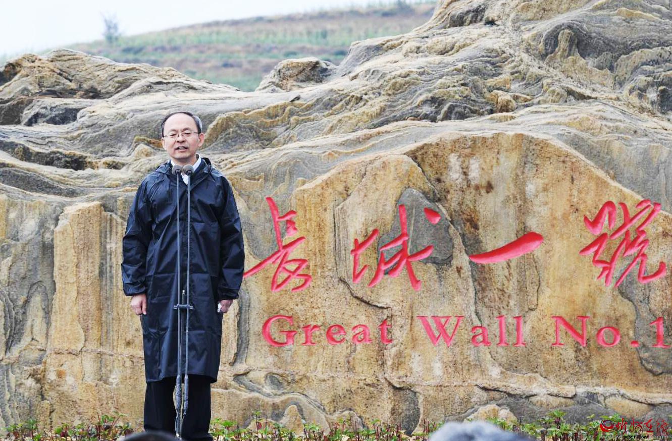 老牛灣長(zhǎng)城一號(hào)旅游公路“0Km”標(biāo)志文化驛站啟用活動(dòng)現(xiàn)場(chǎng)。劉紀(jì)森 攝