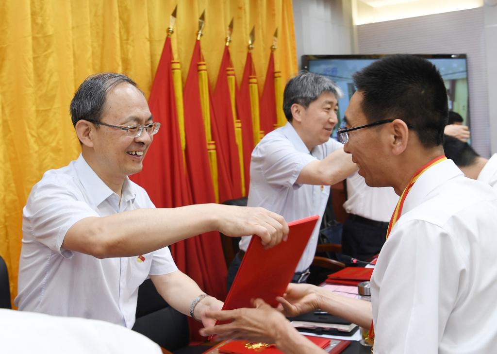 上午8時30分,大會正式開始,全體起立,奏唱國歌。來自全市各行各業(yè)、在工作中取得優(yōu)異成績的99名共產黨員、100名黨務工作者和100個基層黨組織,分別被授予“全市優(yōu)秀共產黨員”“全市優(yōu)秀黨務工作者”“全市先進基層黨組織”榮譽稱號。受到表彰的優(yōu)秀個人和先進集體代表先后上臺領獎,會場響起熱烈掌聲。