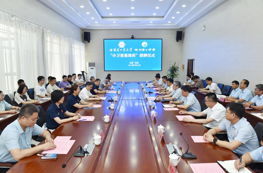 在隨后舉行的授牌儀式上,朱曉東強(qiáng)調(diào),哈爾濱工業(yè)大學(xué)“小衛(wèi)星基地班”為忻州籍學(xué)子提供了一個(gè)接觸哈爾濱工業(yè)大學(xué)、了解哈爾濱工業(yè)大學(xué)、體驗(yàn)哈爾濱工業(yè)大學(xué)的優(yōu)勢(shì)平臺(tái)。希望通過(guò)“小衛(wèi)星基地班”精心設(shè)置的課程活動(dòng),助力更多優(yōu)秀學(xué)子明確定位、開(kāi)拓視野、篤定名校,為忻州乃至全省創(chuàng)新人才培養(yǎng)模式、提高人才培養(yǎng)質(zhì)量、激發(fā)更多教育引領(lǐng)的前瞻思維,讓“小衛(wèi)星”傳遞“大能量”。希望忻州一中能夠以哈爾濱工業(yè)大學(xué)“小衛(wèi)星基地班”授牌儀式為新起點(diǎn)、新標(biāo)桿,提升辦學(xué)育人的更高境界,培養(yǎng)更多具有國(guó)際視野、家國(guó)情懷、創(chuàng)新思維、攻堅(jiān)能力的未來(lái)領(lǐng)軍人才,讓“小衛(wèi)星”塑造“大格局”。希望哈爾濱工業(yè)大學(xué)能夠把創(chuàng)新成果轉(zhuǎn)化到忻州,把創(chuàng)新事業(yè)布局到忻州,把新方案、新模式、新場(chǎng)景、新思路實(shí)踐到忻州,打造市校合作的更多亮點(diǎn),讓“小衛(wèi)星”引領(lǐng)“大發(fā)展”。