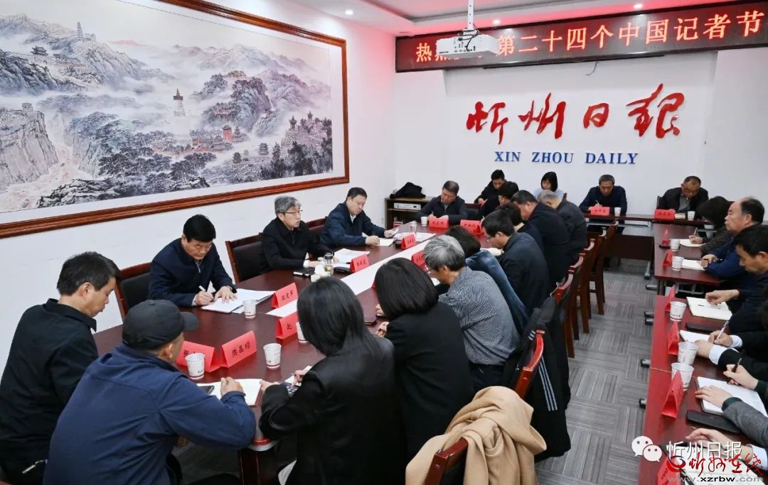 11月8日是第24個(gè)中國記者節(jié)。11月7日,市委書記朱曉東在記者節(jié)到來之際來到忻州日?qǐng)?bào)社、市廣播電視臺(tái)調(diào)研,看望慰問一線新聞工作者,與省駐忻新聞單位和市級(jí)媒體新聞工作者座談交流,向全市廣大新聞工作者致以節(jié)日的問候和誠摯的祝福,并對(duì)新聞?shì)浾摴ぷ魈岢鲆?、寄予厚望。他?qiáng)調(diào),要明確自身定位,提高政治站位,自覺扛牢重大職責(zé)使命,堅(jiān)持團(tuán)結(jié)穩(wěn)定鼓勁、正面宣傳為主的方針,守正創(chuàng)新、與時(shí)俱進(jìn),為加快推動(dòng)高質(zhì)量發(fā)展和現(xiàn)代化建設(shè)提供強(qiáng)大輿論支撐和堅(jiān)強(qiáng)思想保障。市領(lǐng)導(dǎo)王琳玉、溫建軍參加。