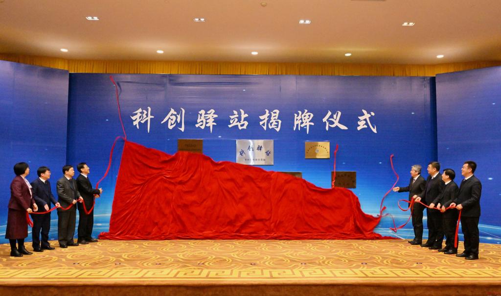 與會領導為“科創(chuàng)驛站”揭牌。馮曉磊 攝