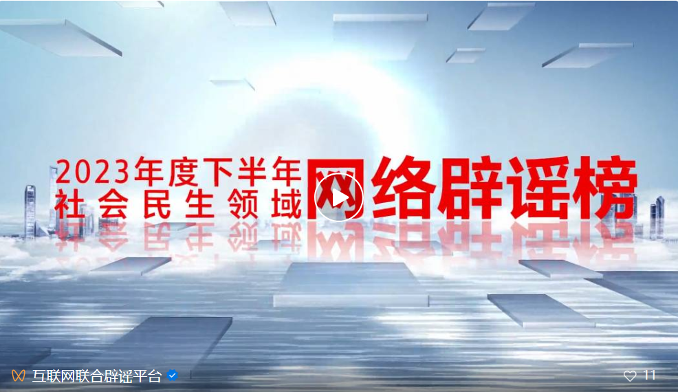 為抵制網(wǎng)絡(luò)謠言,清朗網(wǎng)絡(luò)空間,維護(hù)網(wǎng)民權(quán)益,中央網(wǎng)信辦舉報(bào)中心聯(lián)合中國科協(xié)科普部在組織專家評審基礎(chǔ)上,針對食品安全、應(yīng)急安全、生態(tài)環(huán)境、公共政策等群眾關(guān)切的社會民生領(lǐng)域謠言和誤區(qū),共同發(fā)布《2023年度下半年社會民生領(lǐng)域網(wǎng)絡(luò)辟謠榜》。