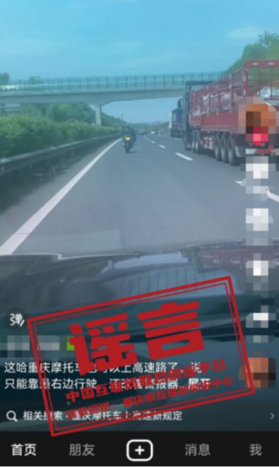 真相:近日,重慶市大足區(qū)網(wǎng)民楊某在互聯(lián)網(wǎng)平臺發(fā)布信息稱“重慶摩托車也可以上高速路了”,引發(fā)關(guān)注。經(jīng)交管部門核實,根據(jù)《重慶市公路管理條例》第三十一條規(guī)定:在高速公路、高速公路用地范圍內(nèi),禁止非機動車、摩托車、拖拉機、輪式專用機械車、鐵輪車、履帶車和可能損害路面的機具行駛。網(wǎng)傳信息系謠言。目前,大足警方已對造謠網(wǎng)民楊某依法予以查處。(來源:“重慶辟謠”微信公眾號)