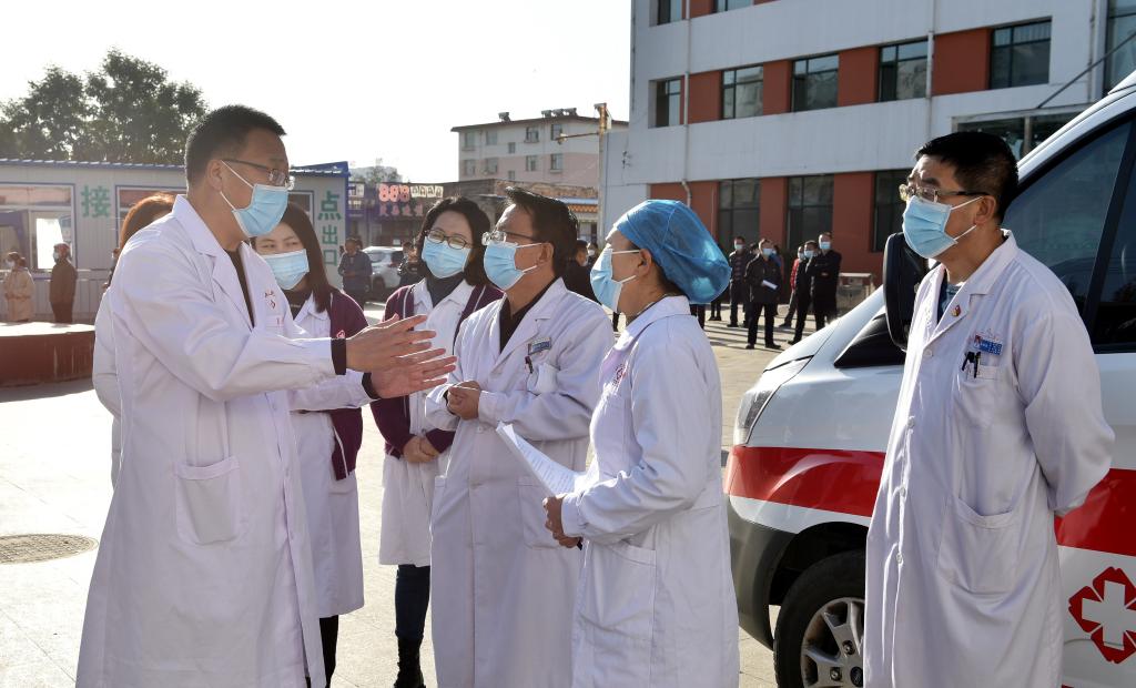 省能源集團(tuán)在后川村的駐村隊(duì)員牛澤召突發(fā)劇烈胸痛、出冷汗,當(dāng)?shù)卮甯刹炕鹚賹⑵渌偷娇h人民醫(yī)院。接診患者后,大夫們一邊聽診一邊了解病情,只見病人面色蒼白,不停地口吐白色粘痰,主訴渾身發(fā)冷、胸憋、胸痛,無法確定病情。當(dāng)即把情況匯報(bào)給了新任院長白鳳云。