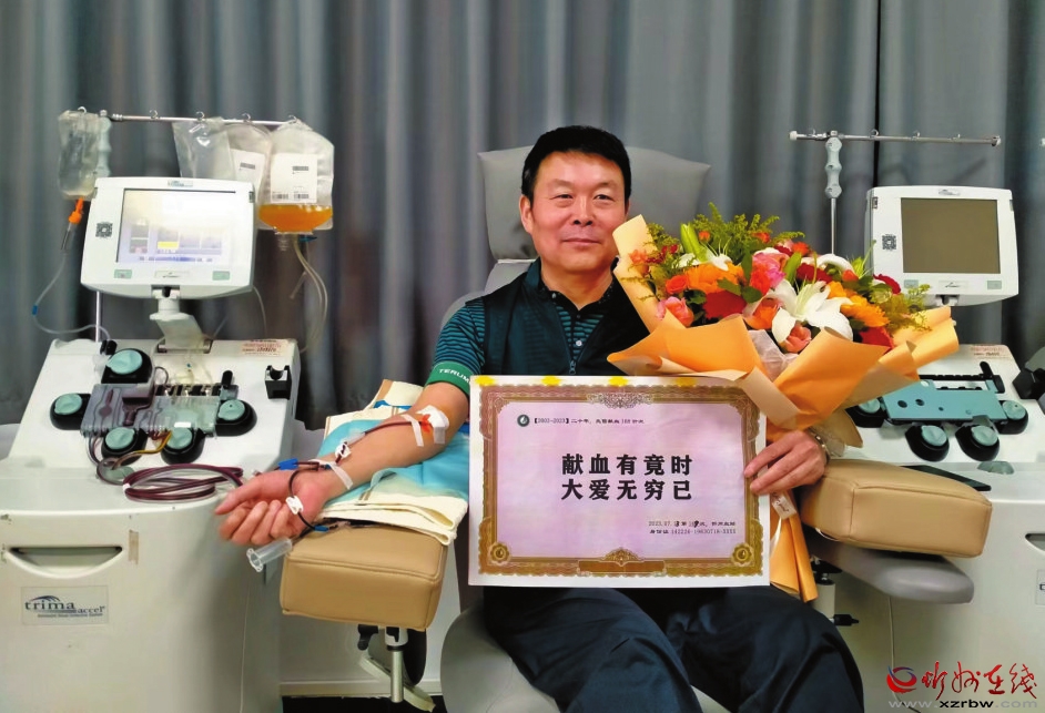 獻血有量,大愛無疆。梁占海表示,獻血雖然結束了,但自己將從此轉向無償獻血志愿服務隊伍,終身服務于無償獻血這一公益事業(yè)。(本報記者 王金華)