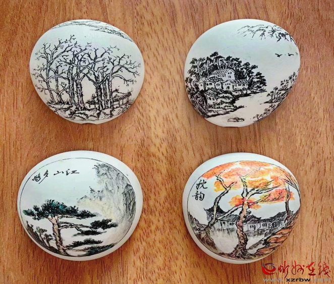 他的幾番“折騰”、數(shù)度“顯擺”、執(zhí)著傳承“非遺”的情結(jié),被制作成電視短片,被寫成技藝故事,一時(shí)間街坊鄰里都知道小區(qū)里有一位和蛋殼有感情的“老頑童”,故鄉(xiāng)的新朋舊友及過去的同事,也紛紛為他“蛋殼上作畫”的行為點(diǎn)贊。