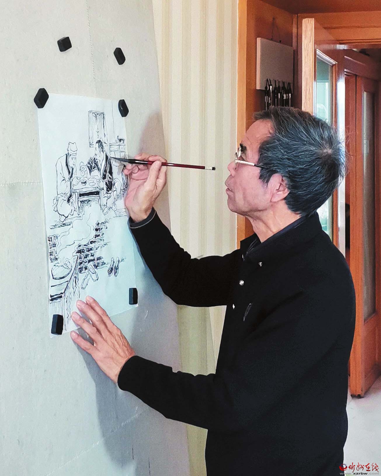 “夢圓畫室”的主理人叫艾吉虎,正如他的視頻號名字一樣,繪畫是他人生的最大愛好和情感寄托。早些年,艾吉虎曾利用繪畫專長從事過玻璃雕畫,隨著玻璃雕畫在裝修行業(yè)的沒落,艾吉虎轉(zhuǎn)戰(zhàn)其他行業(yè),但兜兜轉(zhuǎn)轉(zhuǎn)離不開他的繪畫愛好。在原平市民俗文化研究會當(dāng)美編期間,艾吉虎開始嘗試“小人書”的繪畫創(chuàng)作,沒承想,幾個(gè)插圖畫出來,得到許多人的熱烈追捧,這激發(fā)了他繼續(xù)創(chuàng)作的熱情。