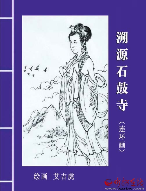 他的“小人書”插畫自帶一種中國傳統(tǒng)故事的“煙火氣”,這種寫實(shí)的筆觸體現(xiàn)了艾吉虎對生活細(xì)節(jié)的凝視。人物線描準(zhǔn)確地表現(xiàn)出主人公的身體結(jié)構(gòu)和肌肉起伏,這樣的細(xì)節(jié)表現(xiàn)正是來源于他對日常生活的細(xì)致觀察。《郝隆曬書》是《世說新語》里記載的一個(gè)成語故事。原平名士郝隆七月七日出日中仰臥,人問其故,答曰:“我曬書?!爆F(xiàn)指人腹中裝書,很有學(xué)問。在“小人書”中,郝隆解開衣扣袒胸露乳曬著太陽,面露微笑而不失幽默之態(tài),他桀驁不馴的個(gè)性通過艾吉虎的畫筆表現(xiàn)得淋漓盡致。《梨鄉(xiāng)原平歷史故事》更顯精煉,作品純用白描,線條疏密有致,構(gòu)圖簡潔大氣,以有限的畫面給人以無限的想象,將梨鄉(xiāng)原平的美景盡鋪眼前,令人回味無窮。
