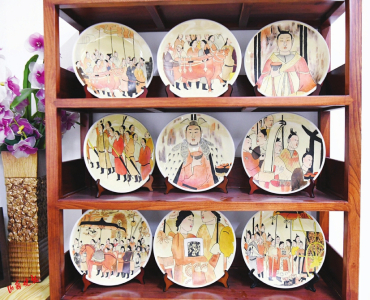 采訪中,提起刻鑿的過程,苗振潔一邊端著自己的瓷盤作品,一邊用手輕撫著那些畫面,就像一位老母親,用慈愛的雙手輕輕摸著孩子的頭,這種回憶,痛并快樂著。苗振潔說:“刻鑿前,構(gòu)思一定要成熟,比如瓷盤里要呈現(xiàn)哪個(gè)壁畫上的內(nèi)容,虛實(shí)之間要重點(diǎn)打造什么圖像,這9幅作品還要彼此關(guān)照、前后呼應(yīng)。等你構(gòu)思好后,還要先畫線稿,又要不斷修改思路,直到滿意為止。第三步,就是刻鑿了,這個(gè)過程就像‘修煉’一樣,創(chuàng)作者必須全神貫注一心一意?!贝蟾庞邪肽甑臅r(shí)間,苗振潔就像閉關(guān)一樣,只要起錘那一刻,就要隔絕和外界的一切聯(lián)系。