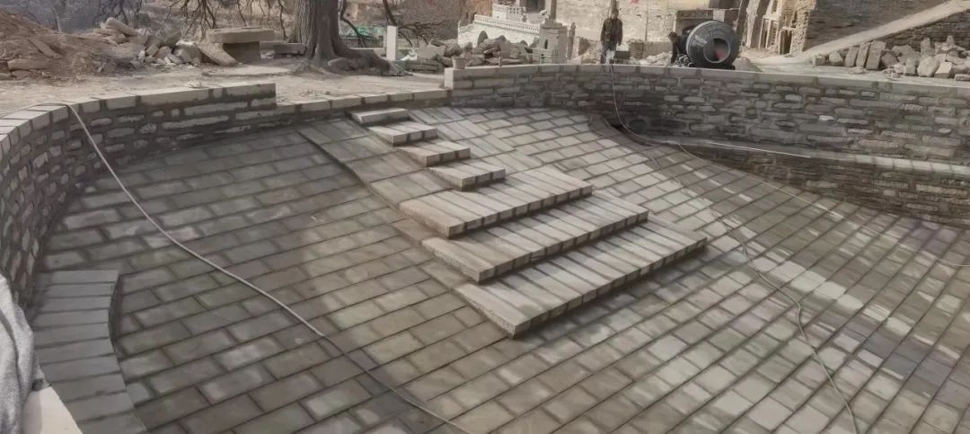 ▲正在進行修復的泊池,這是古村落排水防洪體系中的一部分
