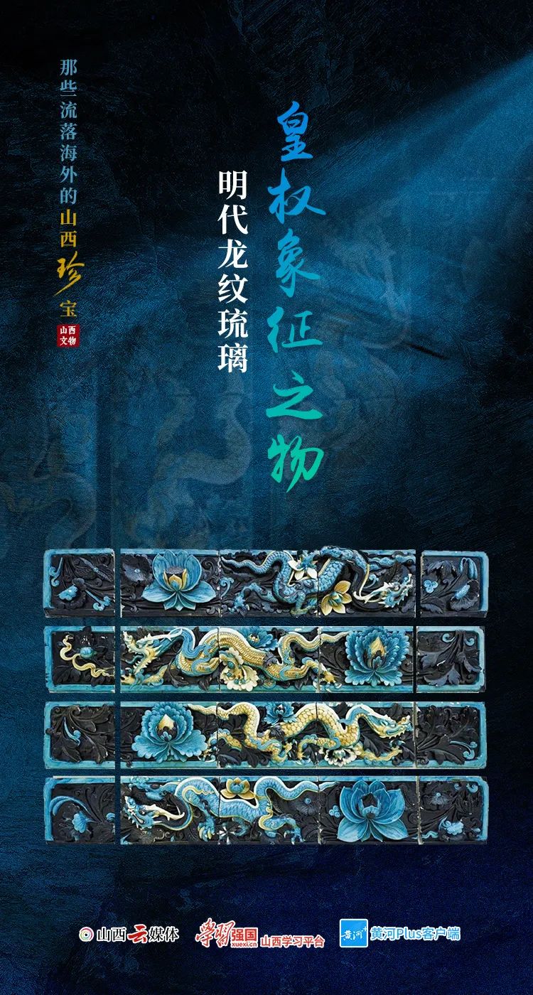 龍是中國古代吉祥如意和皇權(quán)的象征。山西在明代時(shí)期對琉璃技術(shù)的制作非常成熟,各種圖案的裝飾琉璃部件十分普遍。這一組二十塊的釉面瓷磚,打造于15至16世紀(jì)的山西,最初應(yīng)該來自兩個(gè)不同的寺廟建筑。