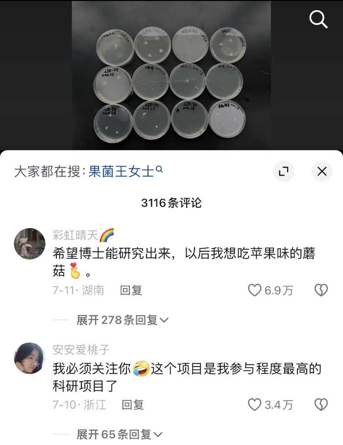 其次,他們“網友有疑問,科普來解惑”的科普答疑方式很活。趙琪老師和許博士在收到“果菌王”后,會實時更新研究最新進展,硬生生地把科普變成了“連續(xù)劇”。