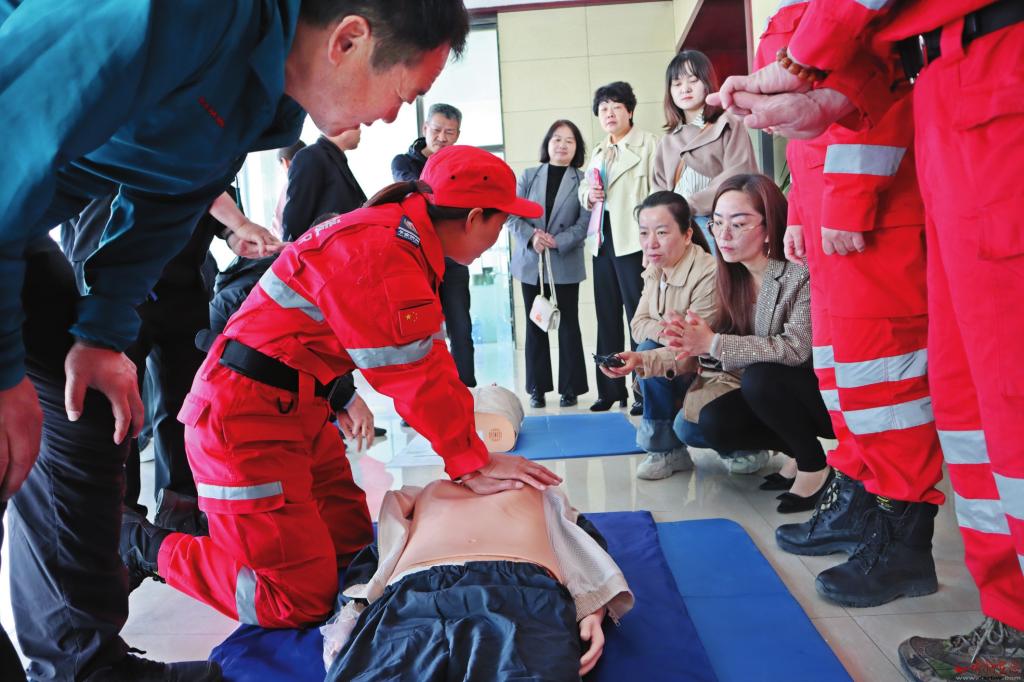 平安應(yīng)急救援隊工作人員為大家詳細(xì)講解示范了心肺復(fù)蘇、止血包扎等急救知識,強調(diào)了應(yīng)急救護“黃金四分鐘”的重要性,并講解了胸外按壓、人工呼吸、止血等施救技巧。