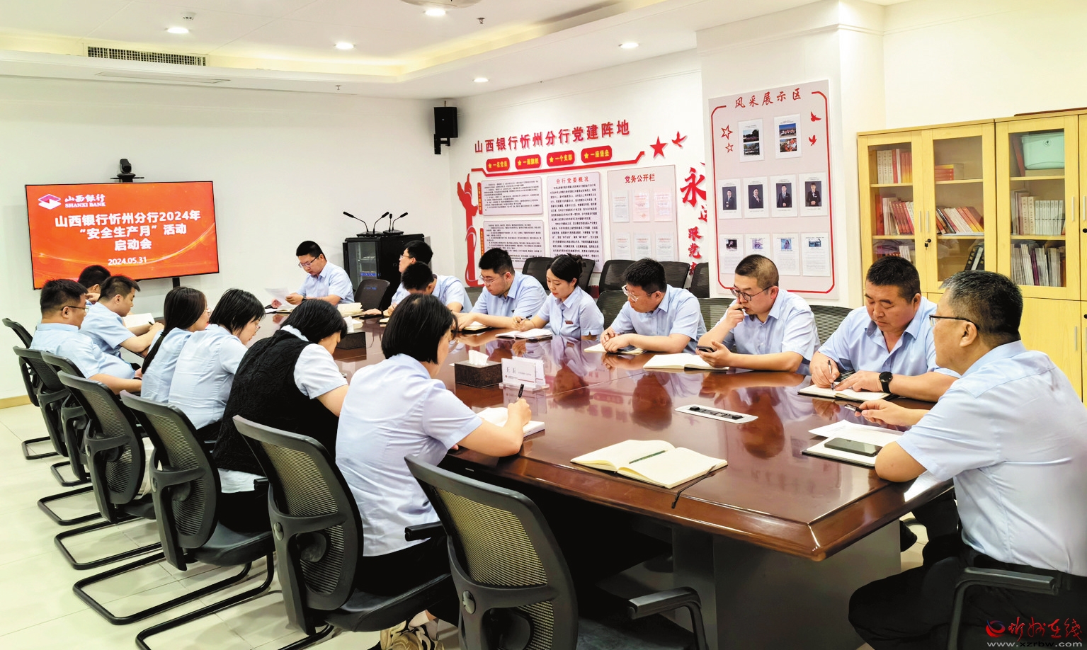 今年6月是第23個(gè)全國“安全生產(chǎn)月”,主題是“人人講安全、個(gè)個(gè)會應(yīng)急——暢通生命通道”。為認(rèn)真貫徹落實(shí)上級部門安全生產(chǎn)工作部署要求,5月31日,山西銀行忻州分行召開“安全生產(chǎn)月”活動啟動會,要求各責(zé)任主體全面壓實(shí)安全責(zé)任,深入開展安全宣傳,堅(jiān)決守牢安全生產(chǎn)底線。啟動會后,全體參會人員集中觀看了《安全生產(chǎn) 責(zé)任在肩》警示教育片。(秦浩東攝)