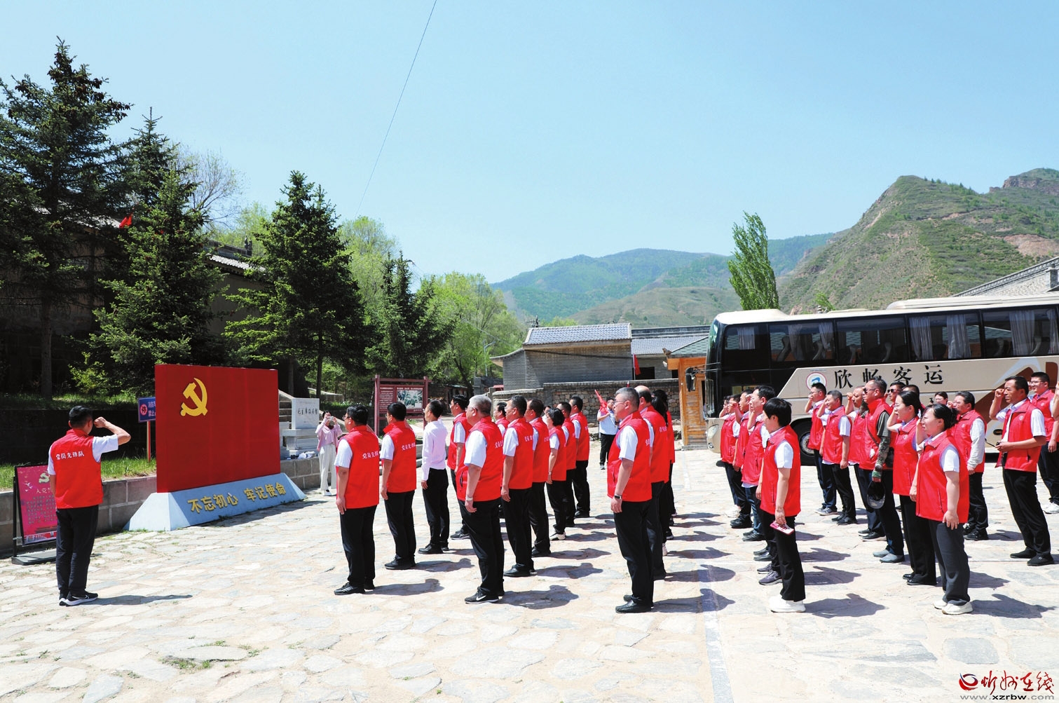 近日,農(nóng)行忻州分行機關(guān)組織全體黨員前往繁峙縣伯強村毛主席路居紀(jì)念館開展主題黨日活動。在紀(jì)念館前,全體黨員面對黨旗莊嚴(yán)宣誓,重溫入黨誓詞,接受了一次深刻的紅色教育洗禮。(王燦 攝)