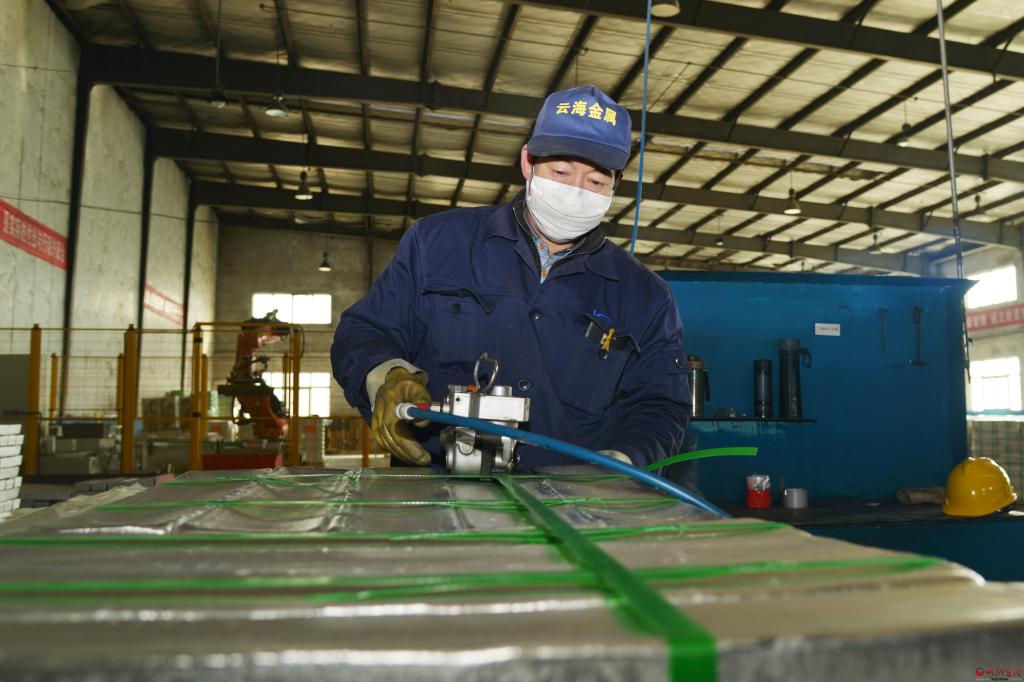 五臺(tái)云海鎂業(yè)工人正在進(jìn)行成品轉(zhuǎn)運(yùn)。 張存良 攝