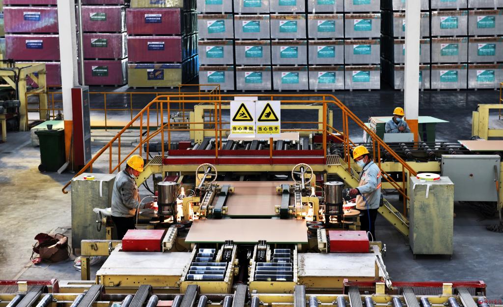 忻府區(qū)豆羅工業(yè)園區(qū)泰山石膏板公司自動化生產(chǎn)線。馮曉磊 攝