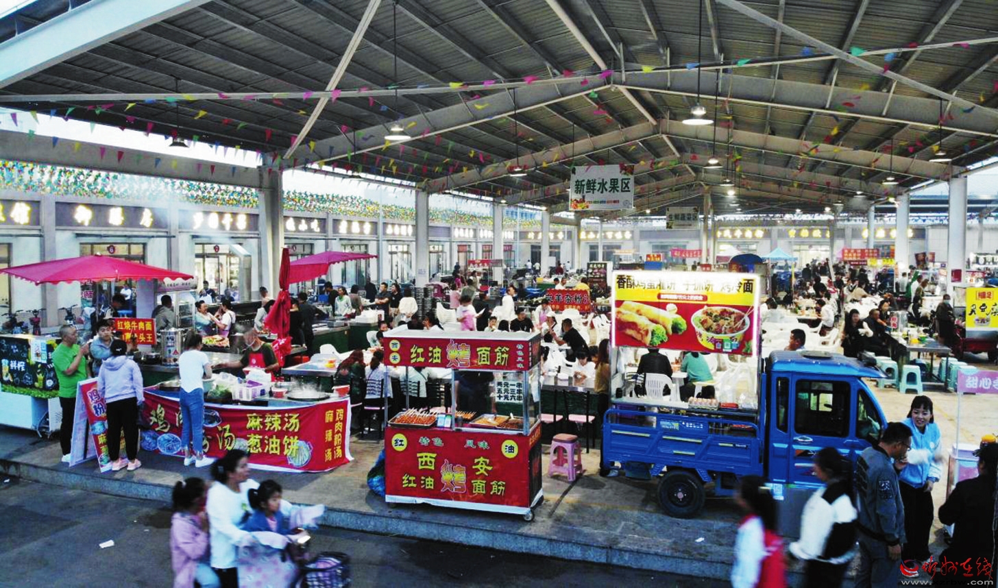政府搭臺,群眾創(chuàng)業(yè)。在百夢園、百萬莊安置小區(qū)對面搭建了百夢園就業(yè)創(chuàng)業(yè)市場,集餐飲、農貿、手工加工、消費幫扶等多種經營方式為一體。市場共有商鋪23間,有開放式市場攤位130余個,總占地面積9630.4平方米。目前市場共入駐商戶23戶,運營攤位120余個,共帶動500余人就業(yè),其中脫貧勞動力102人、搬遷勞動力58人,人均月收入可達到5000余元。