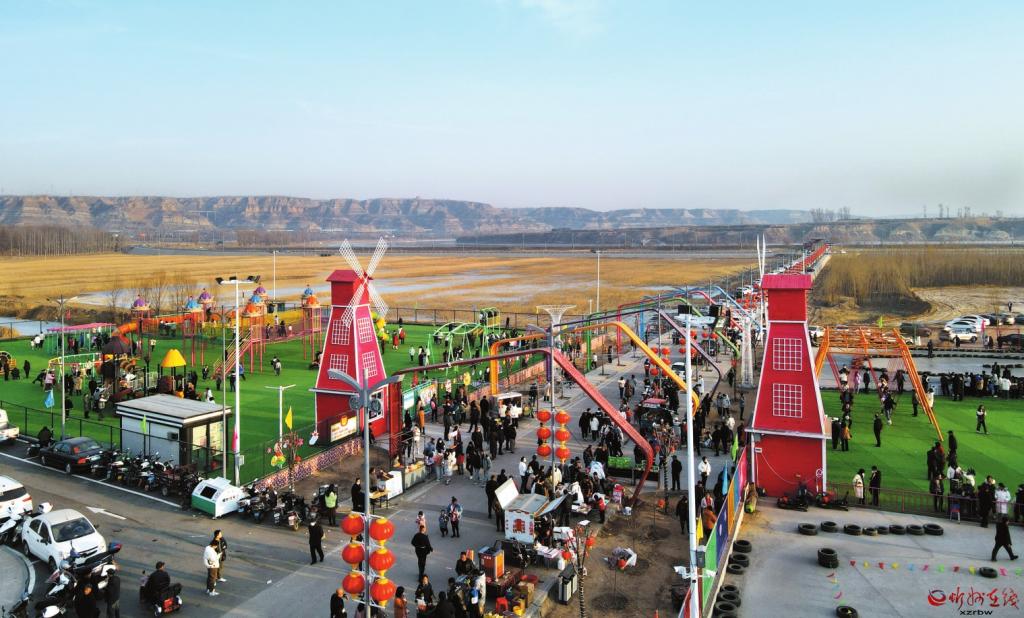 沿著唐家會村整潔的道路往前走,首先看到的是大型親子游樂園。游樂園項目總投資380萬元,占地31.8畝,共有無動力兒童樂園、動力游樂園、水上樂園、滑世界4大板塊,現(xiàn)有無動力設(shè)備35種、動力設(shè)備9種。日??土髁棵刻旒s200人至300人,日均收入6000元左右。每到周末或節(jié)假日,客流量逾千人。從2022年10月試運行到2023年9月累計收益150萬元。游樂園建成投運后,不僅改善了本村的生態(tài)環(huán)境,也填補了河曲縣城游樂園短缺這一空白,為河曲縣居民提供了一個體育健身、文化交流、休閑娛樂的室外活動場所,也為河曲縣郊區(qū)文化環(huán)境、生態(tài)環(huán)境的改善發(fā)揮了重要作用。
