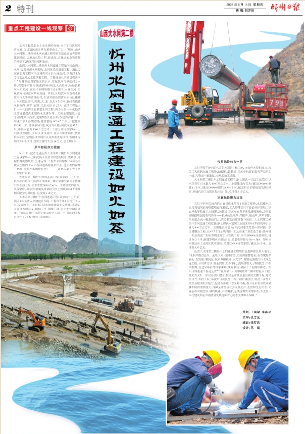 山西大水網第二橫忻州水網連通工程項目總指揮部負責人表示,“水利興則百業(yè)興。去年以來,按照市委、市政府部署要求,全市聚焦保安全、促發(fā)展、惠民生,做實做細做好‘水文章’,特別是圍繞忻州水網連通工程,從可研立項、資金安排、行政審批,到項目準入、評級授信、申報審批等,經過半年多的科學謀劃、統籌聯動,確保了工程高效推進。忻州水網連通工程是全省‘三縱九橫’大水網規(guī)劃第二橫中的重點工程,是助力太忻一體化經濟區(qū)建設、推動全市高質量發(fā)展的支撐工程,是功在當代、利在千秋、澤被后世的民生工程。項目建成后,將進一步加大受水縣輸水配水能力,促進全市地下水采補平衡,提升全市農田農業(yè)灌溉和防洪泄洪能力,保障全市經濟社會發(fā)展生產、生活和生態(tài)用水,完善全市河湖互濟、橫向聯通、豐枯調蓄、全域統籌的水網體系,為太忻一體化建設和全市高質量發(fā)展提供有力的水支撐和水保障?!?/p>
